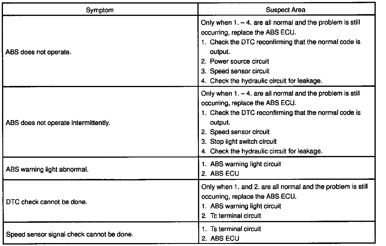 If a normal code is displayed during the DTC check but the problem still occurs, check the circuits for each problem symptom in the order given in the table and proceed to the relevant troubleshooting.