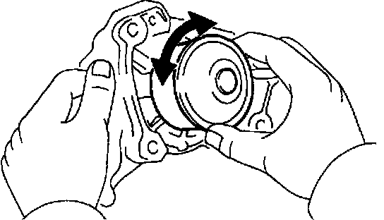 b. Turn the pulley, and check that the water pump bearing moves smoothly and quietly.