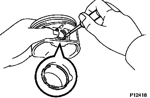 HINT: Be sure that end gap of the snap ring is not aligned with the pin hole cutout portion of the piston.