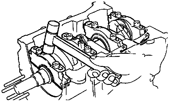 2) Install and uniformly tighten the 8 main bearing cap bolts in several passes, in the sequence shown.