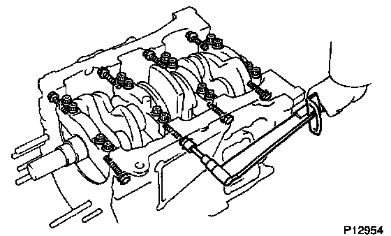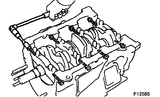 NOTICE: Pull up the main bearing cap little by little to the right and the left by turns and pay attention not to damage the joint surface of the cylinder block and main bearing cap.