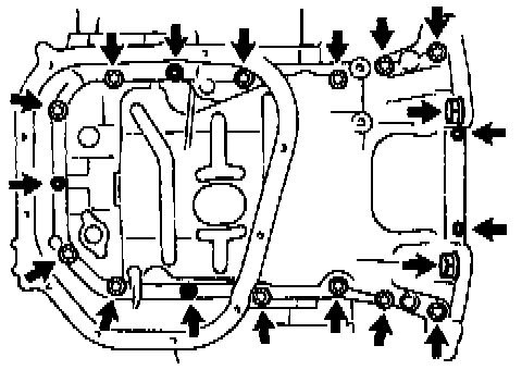 ^ Be careful not to damage the No.2 oil pan flange.