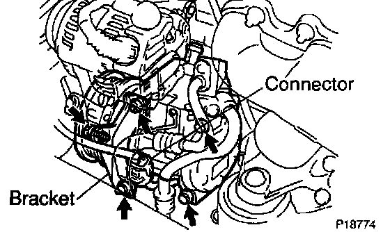 c. Remove the 2 bolts, and disconnect the PS pump from the engine.