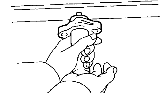 b. Hold the tensioner with both hands and push the push rod strongly as shown to check that it doesn't move. If the push rod moves, replace the tensioner.