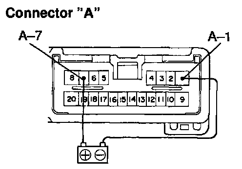 a. Connect the positive (+) lead from the battery to terminal A-7 and the negative (-) lead to terminal A-1.
