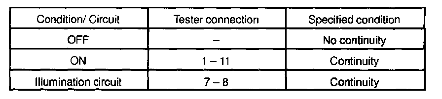 Check the continuity exists between terminals 3 and 11 while switch is pressed.