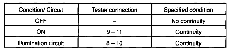 If continuity is not as specified, replace the switch.