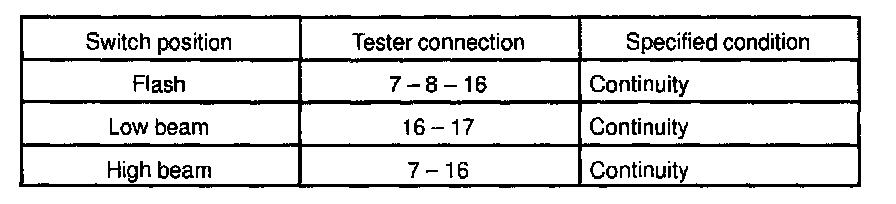 INSPECT HEADLIGHT DIMMER SWITCH CONTINUITY