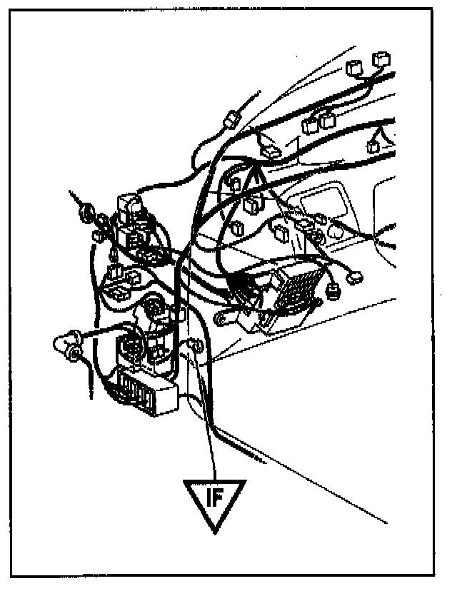 F. Securely attach the eyelet to the existing ground point located in the left kick panel area. (Ground Point IF)