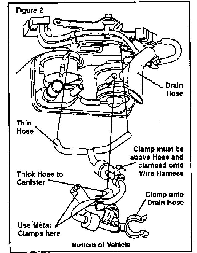 2. Raise vehicle on lift to gain access to the Purge Canister and remove the two Vacuum Lines indicated in Figure 1.