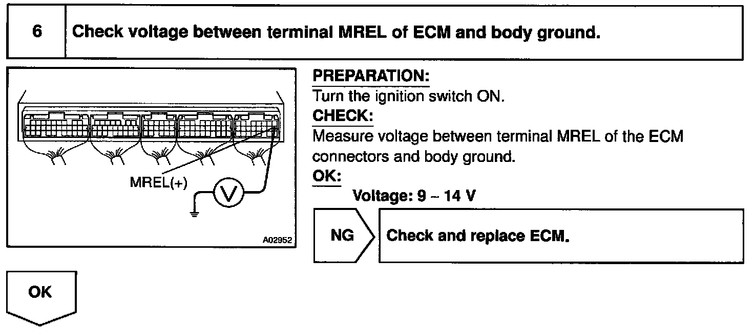 This signal causes current to flow to the coil, closing the contacts of the EFI, main relay and supplying power to terminal +B of the ECM.