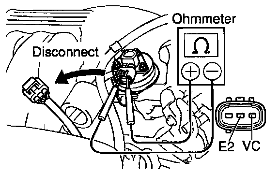 If the resistance is not as specified, replace the EGR valve position sensor.