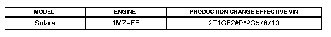 ^ 1999 - 2002 model year Solara vehicles equipped with 1MZ-FE engines produced BEFORE the Production Change Effective VIN shown below.