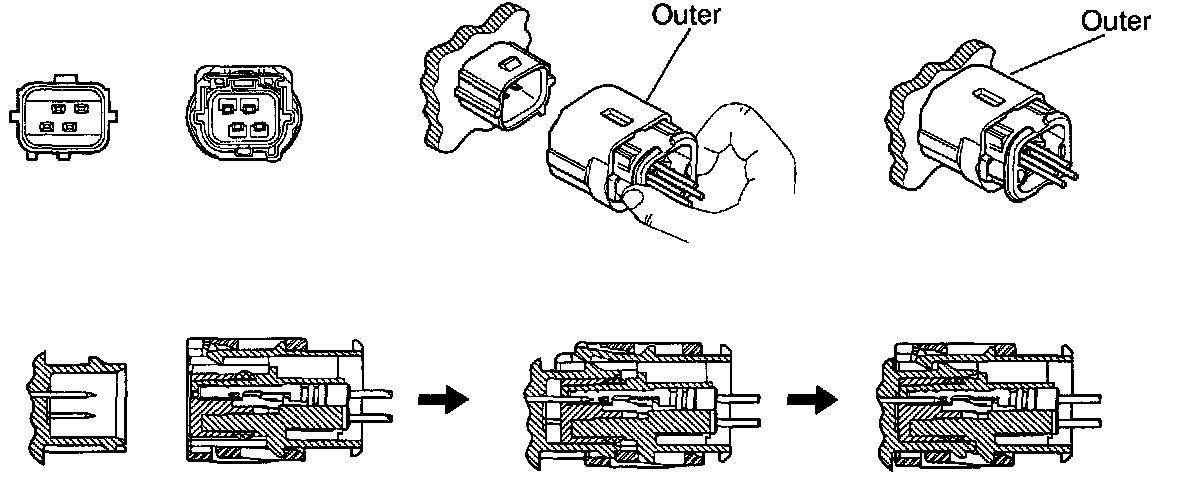 b. As they are fitted in, the outer slides rearward. Press it until the outer returns to its original position again.