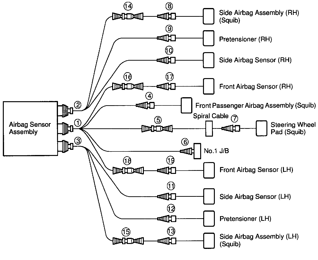 An airbag activation prevention mechanism is built into the connector for the squib circuit of the SRS.