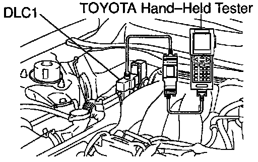 DTC Check (Using TOYOTA Hand-Held Tester)a. Hook up the TOYOTA hand-held tester to the DLC1.