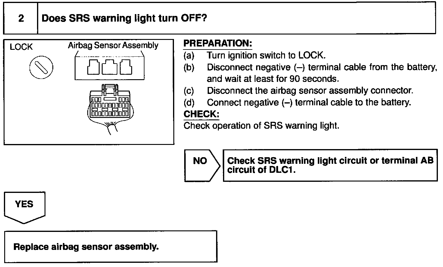 If there is a malfunction in the SRS, the SRS warning light lights up to inform the driver of the abnormality. When terminals Tc and E1 of the DLC1 are connected, the DTC is displayed by blinking the SRS warning light.