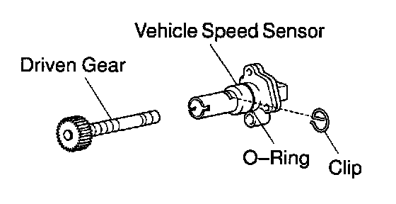 b. Remove the clip and driven gear from the vehicle speed sensor.