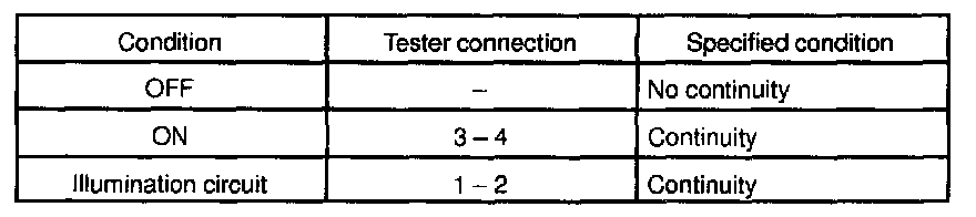 If continuity is not as specified, replace the switch.