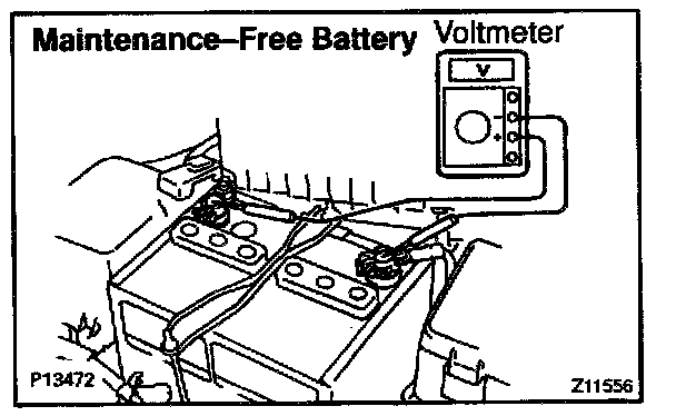 c. Measure the battery voltage between the negative (-) and positive (+) terminals of the battery.