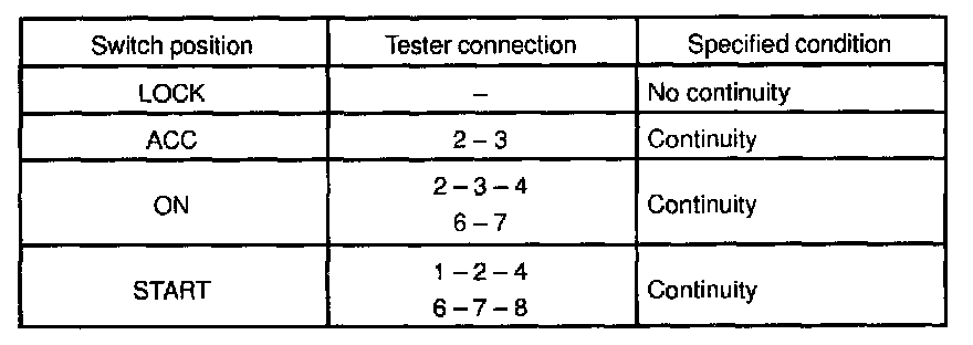 INSPECT KEY UNLOCK WARNING SWITCH CONTINUITY