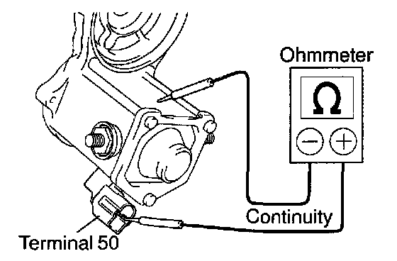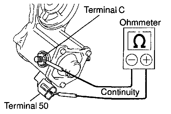 Using an ohmmeter, check that there is continuity between terminals 50 and C.