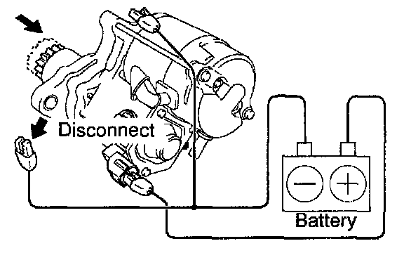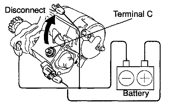 With battery connected as above with the clutch pinion gear out, disconnect the negative (-) lead from terminal C.