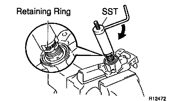 e. Using SST, push down the retaining ring until it fits into the shaft groove and install the main shaft assembly.