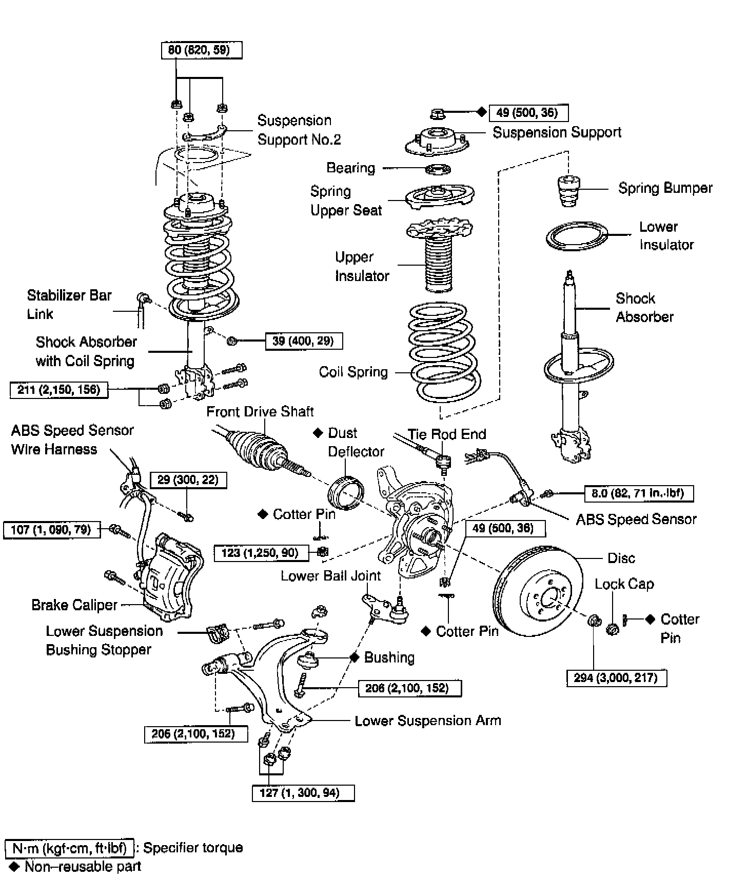 ^ When holding the shock absorber with the coil spring removed, do not hold it by the spring lower seat. Also, do not knock the spring lower seat.