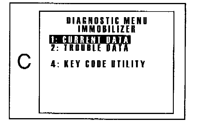 5. From the "DIAGNOSTIC MENU IMMOBILIZER" (Screen C), select [1: CURRENT DATA]