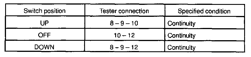 INSPECT POWER WINDOW SWITCH CONTINUITY