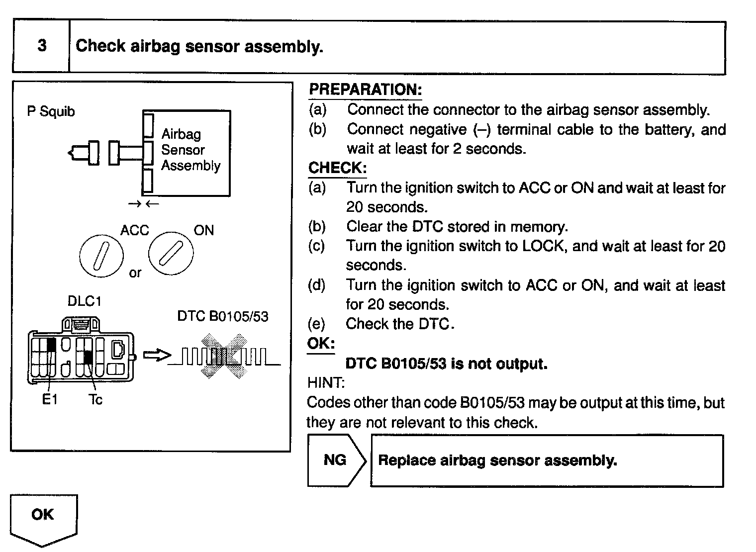 DTC B0105/53 is recorded when a short is detected in the P squib circuit.