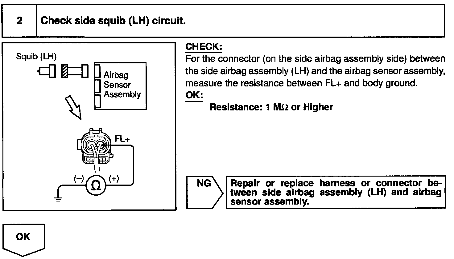 The side squib (LH) circuit consists of the airbag sensor assembly and side airbag assembly (LH).