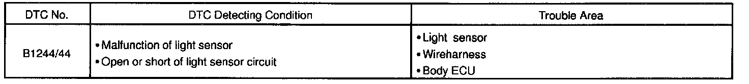 This DTC is output when failure of light sensor circuit is detected.