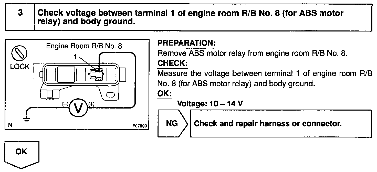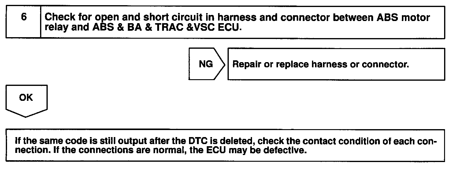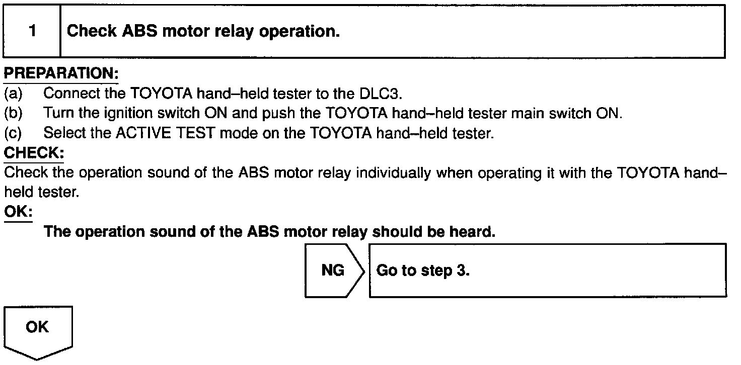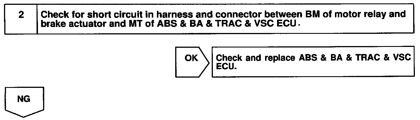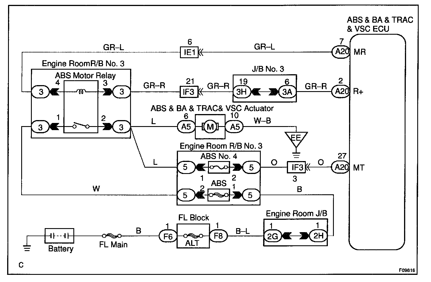 CIRCUIT DESCRIPTIONThe ABS motor relay supplies power to the brake actuator pump motor. While the ABS & BA & TRAC & VSC are activated, the ECU switches the motor relay ON and operates the brake actuator pump motor.