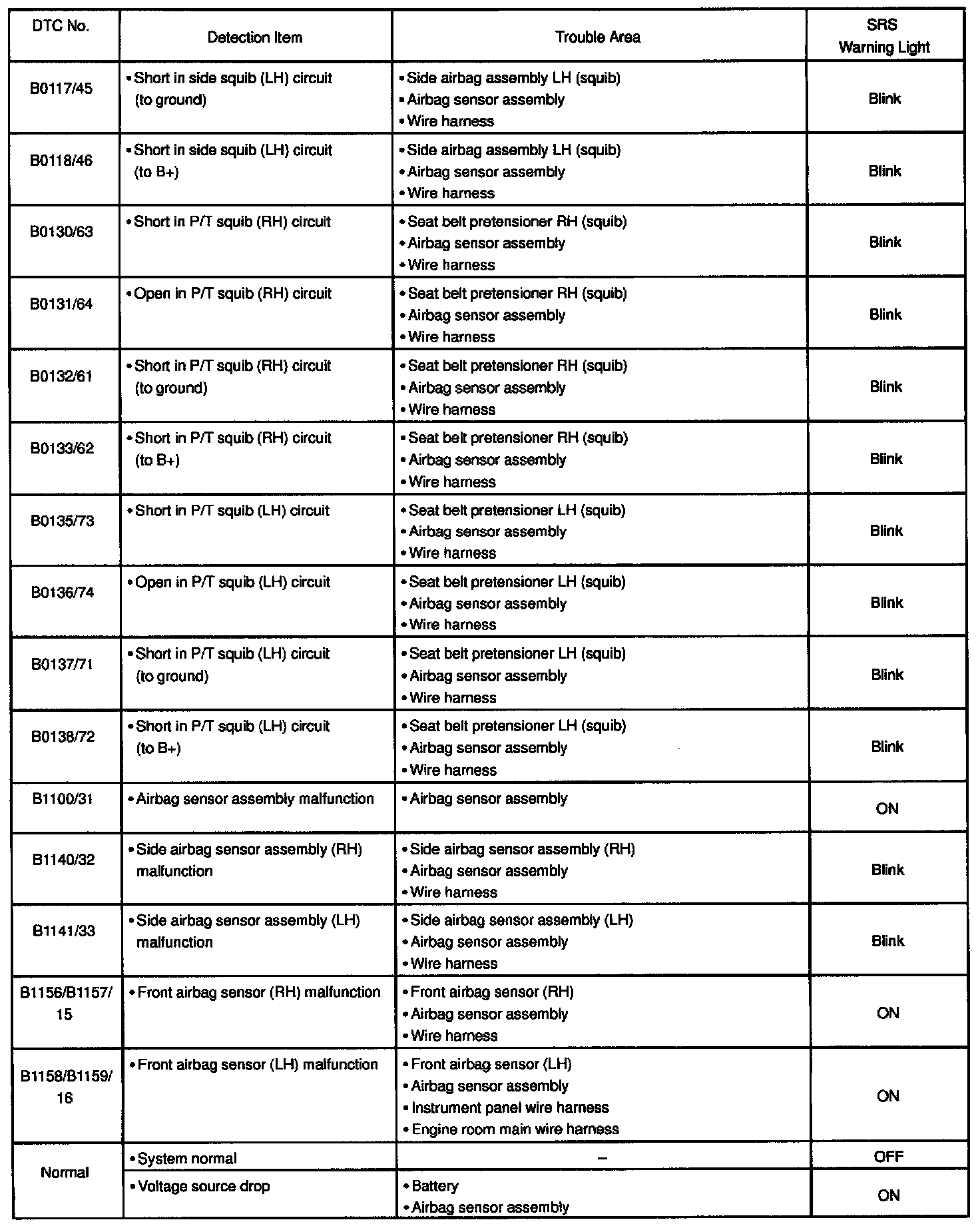 - When the SRS warning light remains lit up and the DTC is the normal code, this means a voltage source drops.