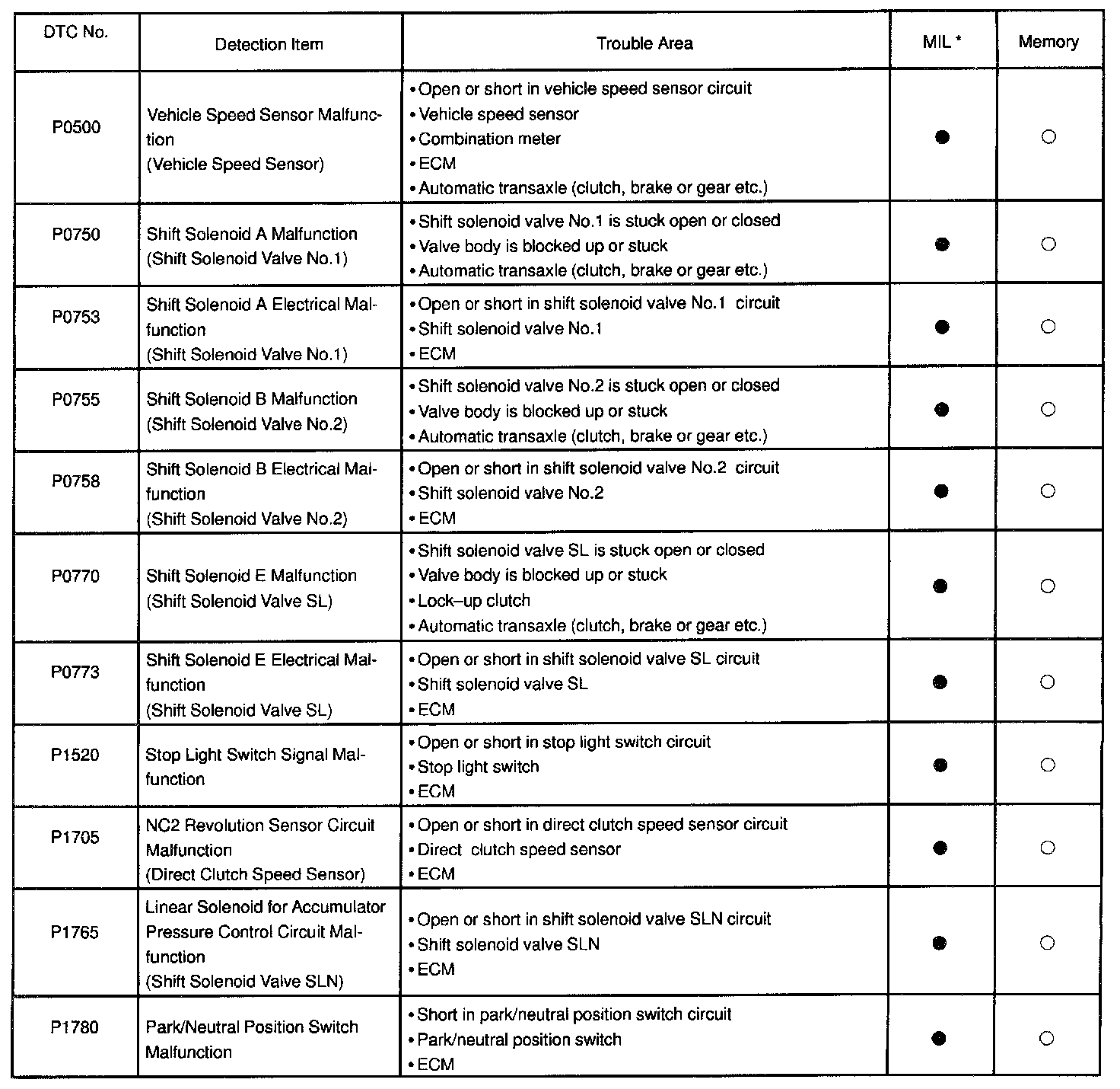 A L L Diagnostic Trouble Codes ( DTC )