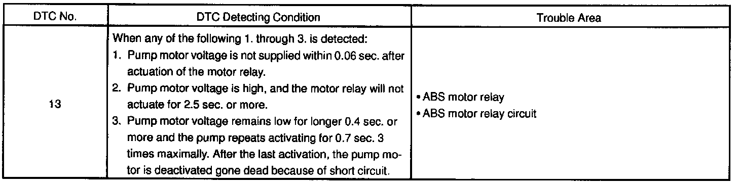 CIRCUIT DESCRIPTIONThe ABS motor relay supplies power to the ABS pump motor. When the ABS is activated, the ECU switches the ABS motor relay ON and operates the ABS pump motor.