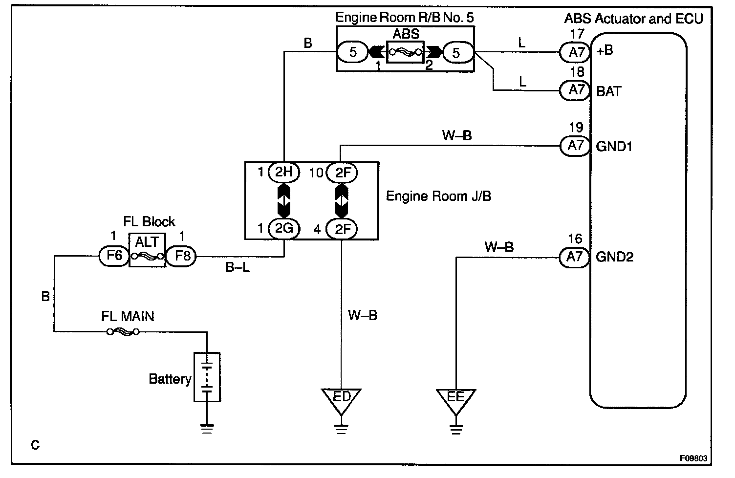 CIRCUIT DESCRIPTIONThis solenoid goes on when signals are received from the ECU, and controls the pressure acting on the wheel cylinders thus controlling the braking force.