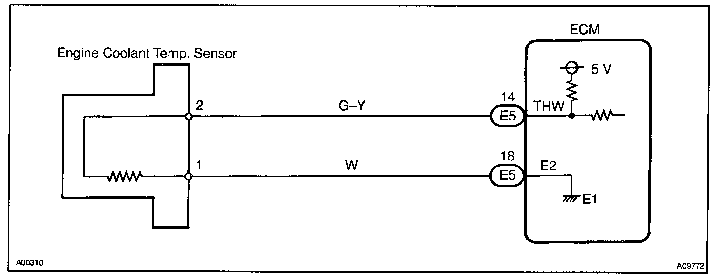 CIRCUIT DESCRIPTIONA thermistor built into the engine coolant temperature sensor changes the resistance value according to the engine coolant temperature.
