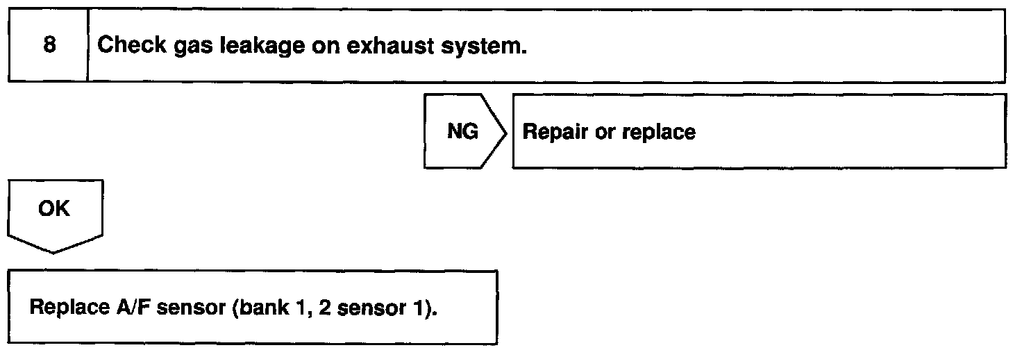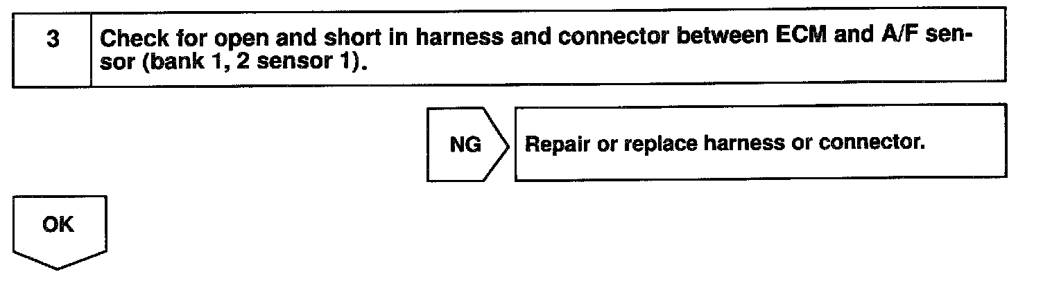 By the A/F sensor output, the ECM can determine the deviation amount from the stoichiometric air-fuel ratio and control the proper injection time immediately. If the A/F sensor is malfunctioning, ECM is unable to perform accurate air-fuel ratio control.
