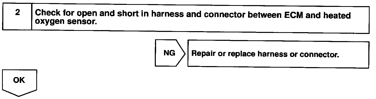 The A/F sensor is equipped with a heater which heats the zirconia element. The heater is controlled by the ECM. When the intake air volume is low (the temp. of the exhaust gas is low), current flows to the heater to heat the sensor for accurate oxygen concentration detection.