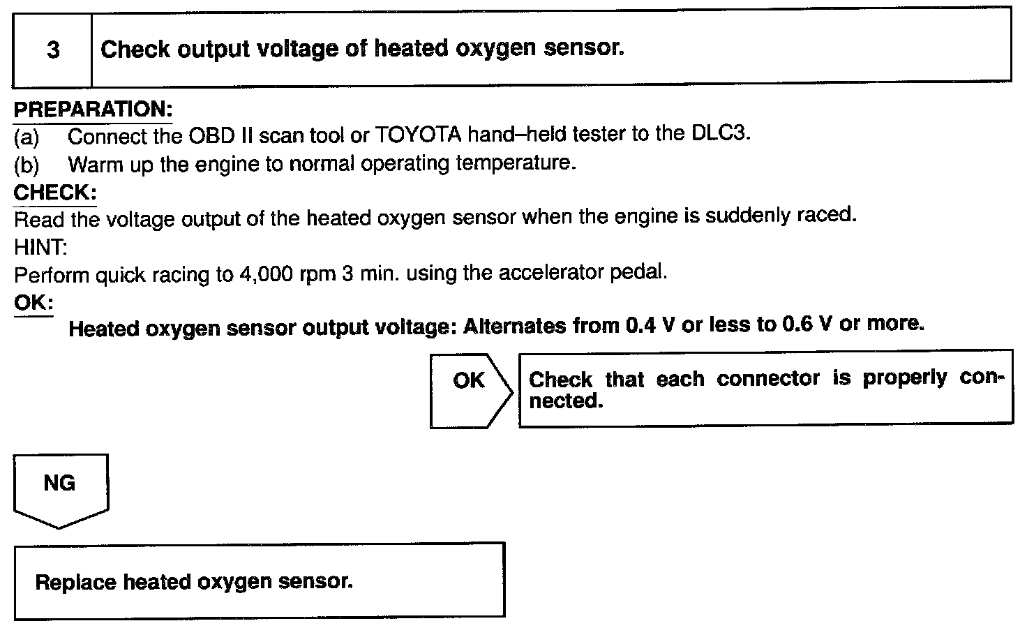 HINT: Read freeze frame data using TOYOTA hand-held tester or OBD II scan tool. Because freeze frame records the engine conditions when the malfunction is detected. When troubleshooting, it is useful for determining whether the vehicle was running or stopped, the engine was warmed up or not, the air-fuel ratio was lean or rich, etc. at the time of the malfunction.