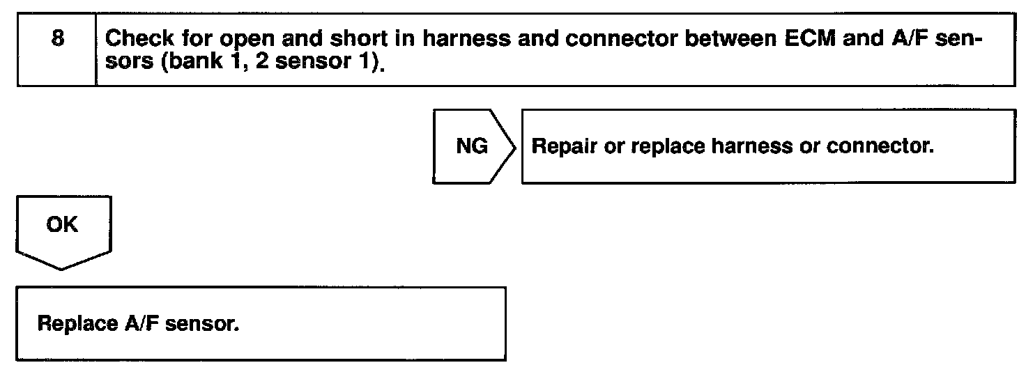 - The ECM controls the voltage of the AFR+, AFL+, AFR- and AFL- terminals of the ECM to the fixed voltage. Therefore, it is impossible to confirm the A/F sensor output voltage without OBDII scan tool or TOYOTA hand-held tester.