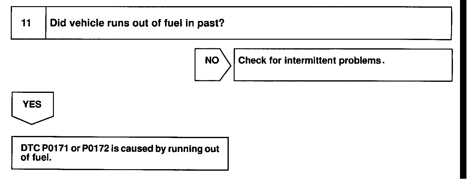 - If the vehicle runs out of fuel, the air-fuel ratio is lean and DTC P0171 is recorded. The MIL then comes on.