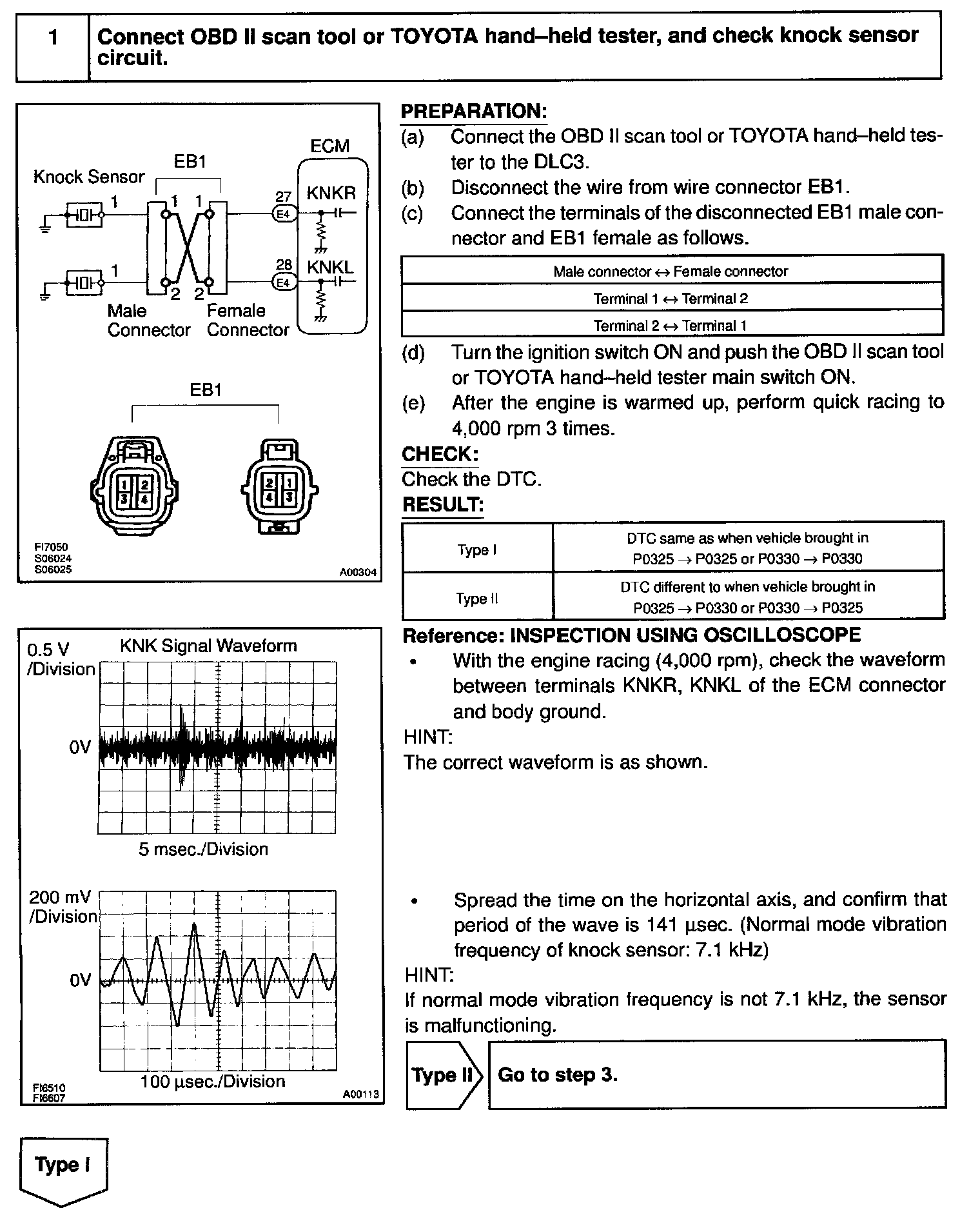 P0325 - Knock Sensor 1 Circuit Malfunction (Bank 1)CIRCUIT DESCRIPTION