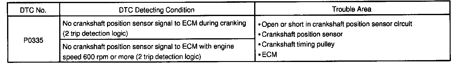 - Perform troubleshooting of DTC P0335 first. If no trouble is found, troubleshoot the following mechanical Systems.