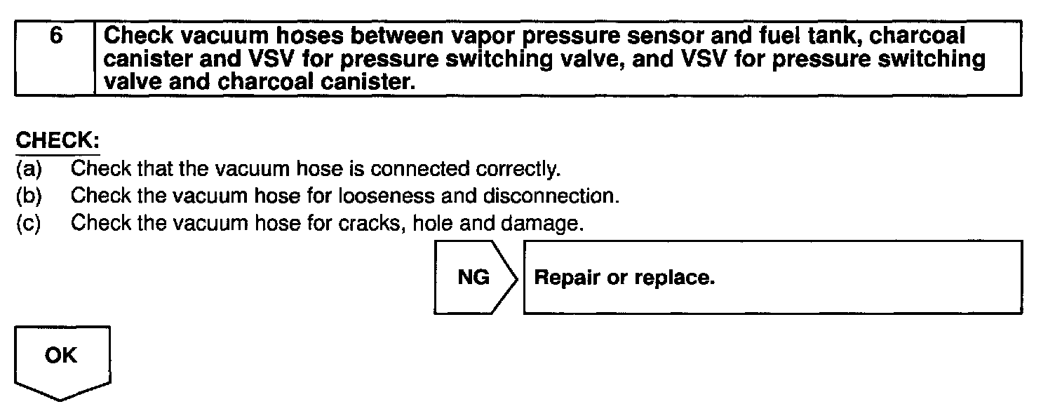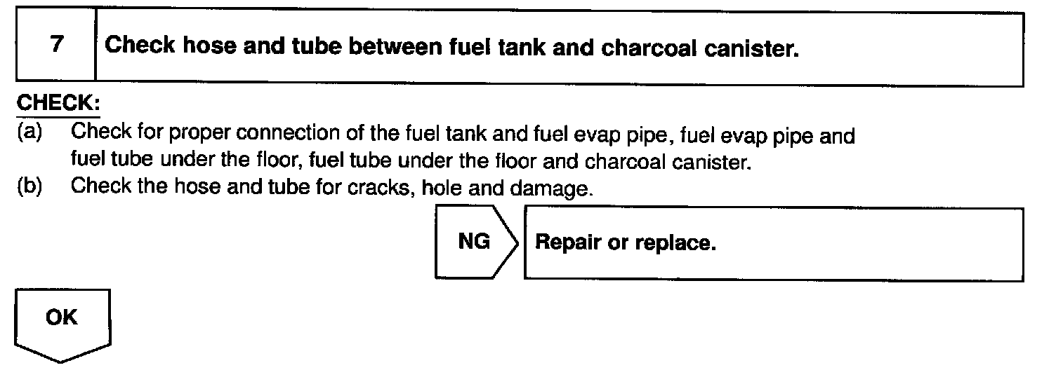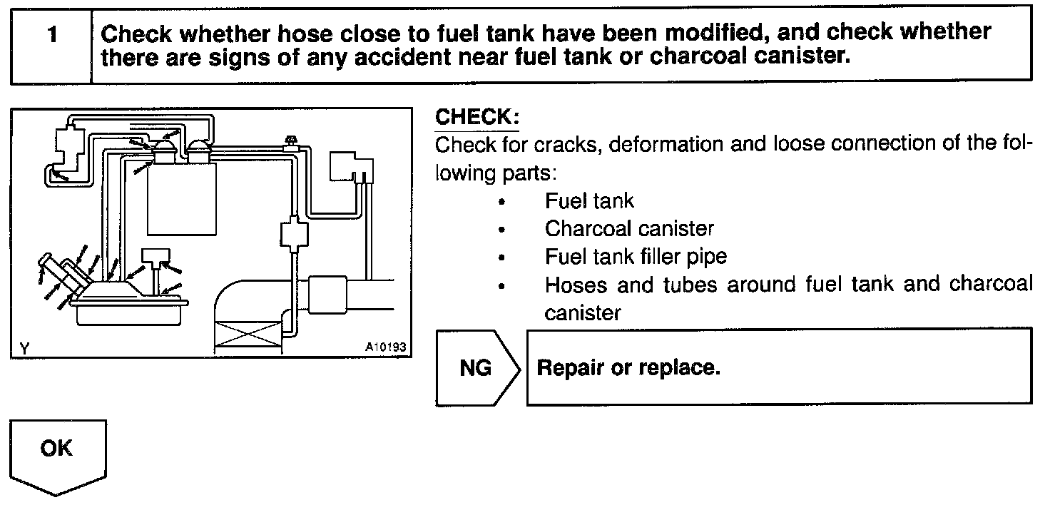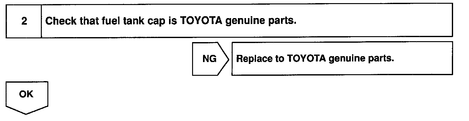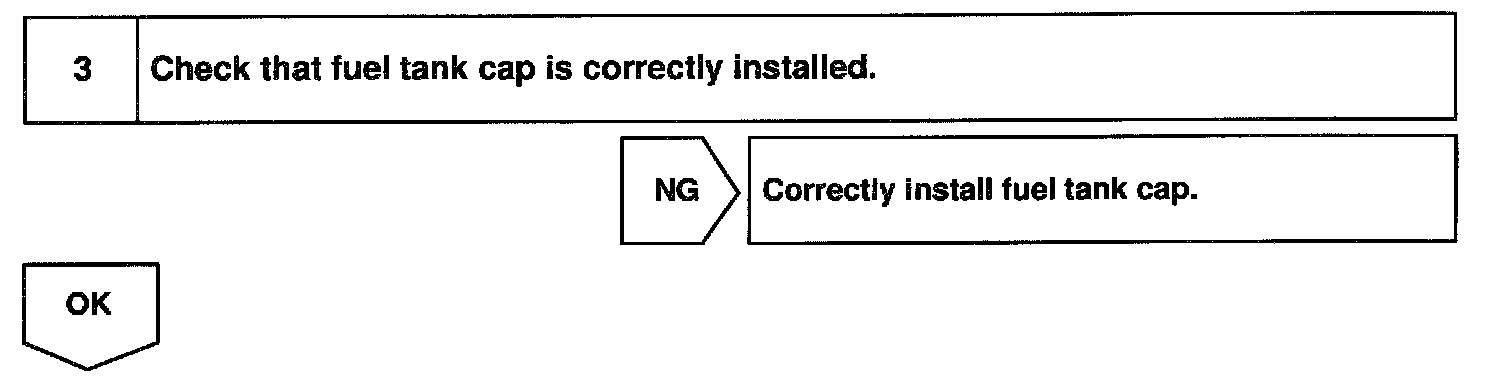 - Ask the customer whether, after the MIL came on, the customer found the fuel tank cap loose and tightened it. Also ask the customer whether the fuel tank cap was loose when refuelling. If the fuel tank cap was loose, it was the cause of the DTC. If the fuel tank cap was not loose or if the customer was not sure if it was loose, troubleshoot according to the following procedure.
