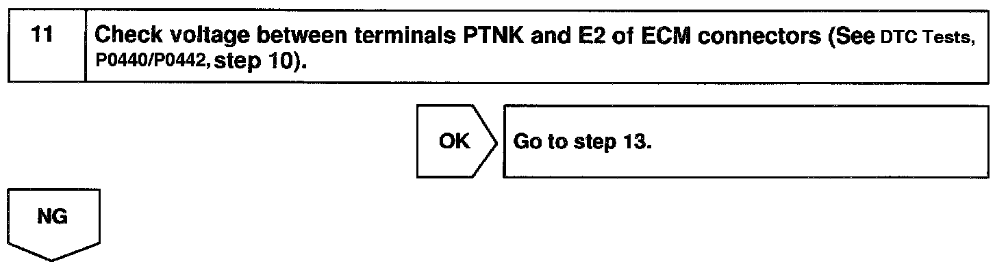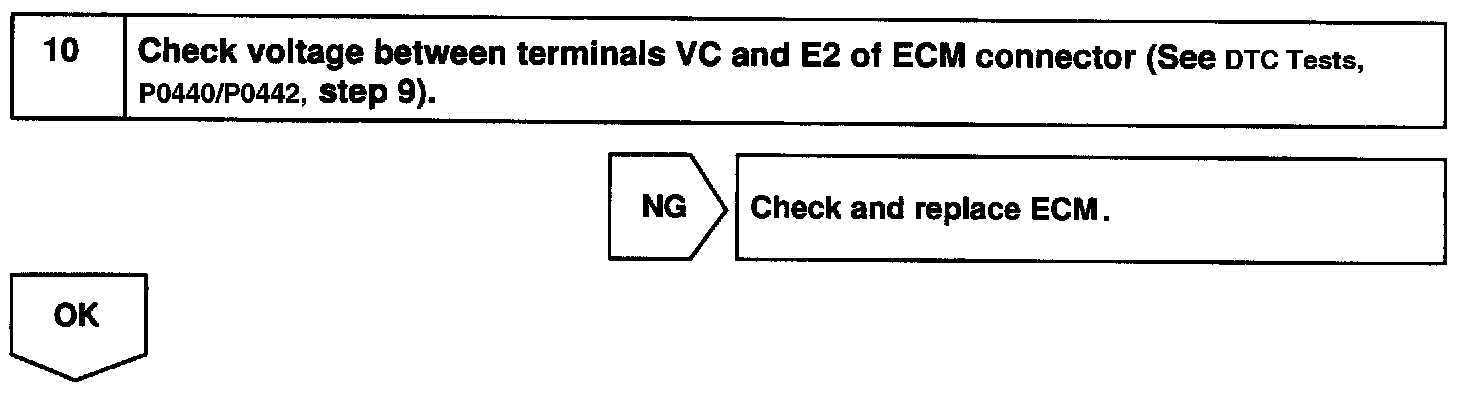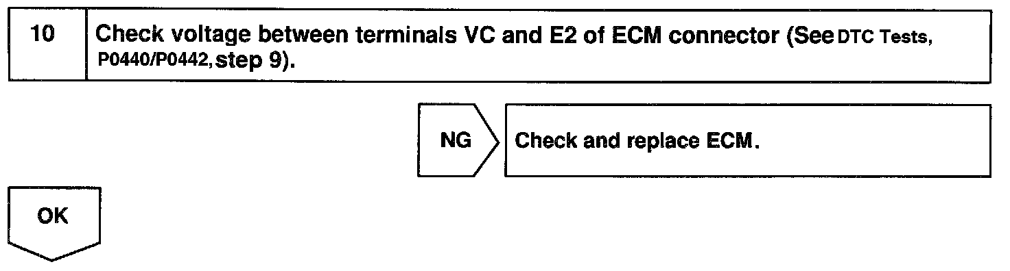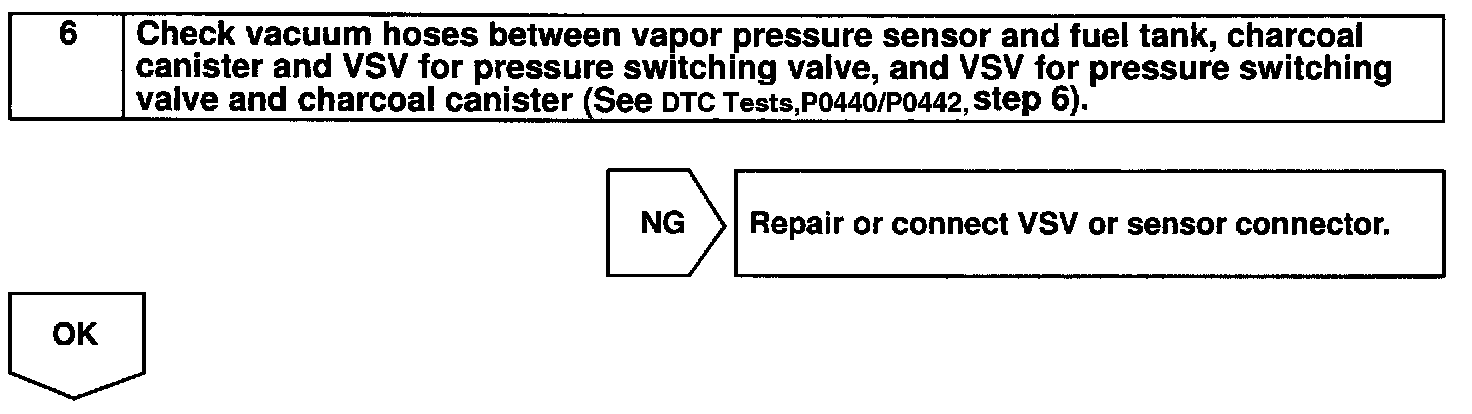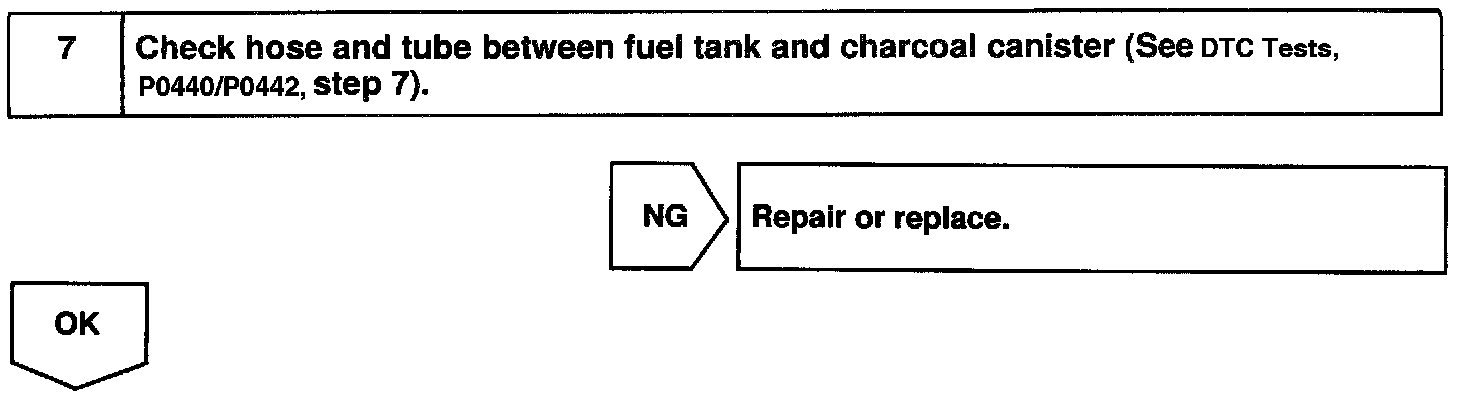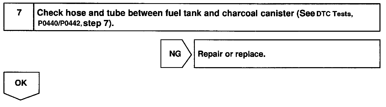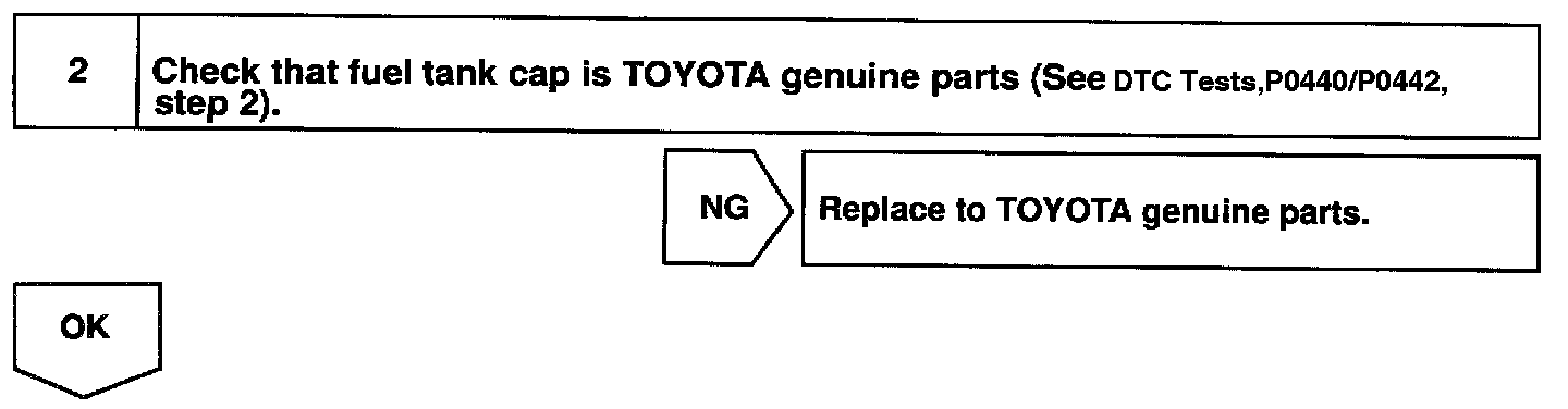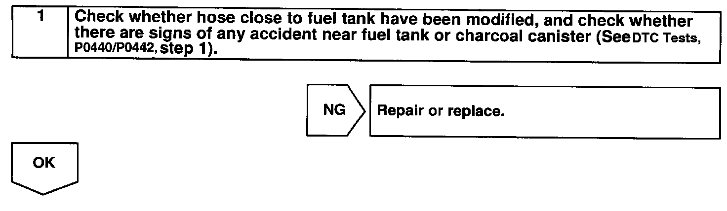 - If DTC P0441, P0446, P0450 or P0451 is output after DTC P0440 or P0442,first troubleshoot DTC P0441, P0446, P0450 or P0451. If no malfunction is detected, troubleshoot DTC P0440 or P0442 next.