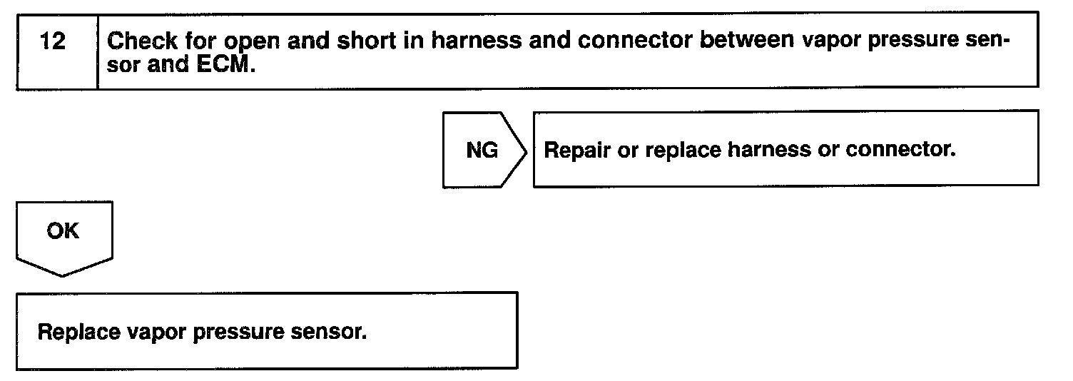 The ECM decides whether there is an abnormality in the evaporative emission control system based on the vapor pressure sensor signal.